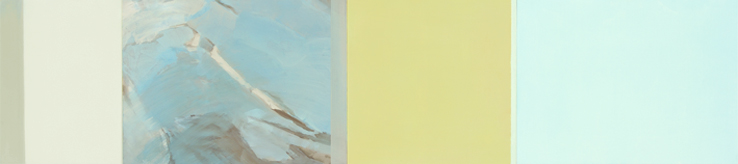 Ein Besuch Das Atelier ist eine Garage: Ein Tor, kahle, rauhe, weiss getünchte Wände ohne Fenster, Röhren, die sich hinauf und hinab und den Wänden entlang ziehen. In diesem karg anmutenden Raum entsteht eine äusserst sensitive, verhaltene Kunst, die den Betrachter zuerst nur fein, dann aber immer nachhaltiger berührt. Die träumerisch schwebenden Farbklänge, der Beziehungsreichtum der Formen, die die Künstlerin Esther Huber in ihren Bildern schafft, laden dazu ein, sich in einem Reich der Stimmungen, vielleicht der Erinnerungen und Ahnungen zu verlieren. Das Tor ist immens, 4 Meter hoch, 4 Meter breit. Den Raum betritt man durch eine kleine Türe, die in die weite, aus strukturiertem Gussglas bestehende Fläche eingelassen ist. Das Tor selbst wirkt, wie wenn es für immer und ewig verschlossen wäre: es sperrt die Aussenwelt kraftvoll aus. Licht flutet durch die undurchsichtige Gussglasfläche in das Atelier; die Fläche lässt aber kein einziges Bild hinein – und keinen einzigen Blick hinaus. Die Garage hat sich gewandelt zum hermetischen Kunst-Raum, einem idealen Gefäss für die starke Verinnerlichung und hohe Konzentration, aus der die Werke Esther Hubers entstehen. In diesem Raum sitzend gerate ich, ausgehend von der Frage, was sie angesichts der leeren Leinwand empfinde, mit Esther Huber ins Gespräch. Ratlosigkeit, Hilflosigkeit habe sie dann früher jeweils ergriffen. Mit der Zeit hat sie aber Mittel gefunden, dieser Ohnmacht vorzubeugen. Einen Rahmen herstellen, ihn mit Leinwand – häufig einem Baumwollstoff – bespannen, diese Leinwand vorleimen, grundieren, die Ei-Tempera Farben anrühren und mischen: Diese handwerkliche Arbeit, der sie sich ganz und mit Musse überlässt, regt den künstlerischen Prozess an und stimmt das Material durch die richtige und respektvolle Behandlung günstig – so merkwürdig das klingen mag. Aus dieser „Tuchfühlung“ kann sich der Akt des Malens ganz direkt und natürlich ergeben. Ein weiterer Schritt kommt aber oft dazu: Esther Huber malt Innenwelten. Damit diese fliessenden, sich beständig umgestaltenden Landschaften aus dem Seelenraum aber in die Sichtbarkeit treten können, braucht es einen Stimulus, der sie Ausdruck finden lässt in einem Gefühl oder in einer Stimmung. Dieser Stimulus ist häufig eine Fotografie oder eine Zeichnung, die die Künstlerin selbst gemacht hat. Fotografie und Zeichnung sind also keine Vorlagen, sondern so etwas wie Punkte, um welche sich, was von Innen unbestimmt nach Ausdruck drängt, als ein Gefühl oder als eine Stimmung abzeichnet. Dieses Gefühl, diese Stimmung setzt Esther Huber dann in einem spontanen, intuitiven Gestus auf der Leinwand als eine erste Spur malerisch um. In ihrer tastenden Offenheit besitzt diese Spur eine vibrierende Lebendigkeit und eröffnet den Dialog zwischen dem, was ins Bild drängt, und der Künstlerin, die es ins Bild setzt. Es ist ein Sich-offen-Halten gegenüber dem, was in die Erscheinung treten möchte, ein Verzicht auf verfügende Macht, ein Prozess, in dem sich hohe Rezeptivität und gestaltende Kraft durchdringen. Aus diesem Dialog, diesem Hin und Her entsteht in einem Malvorgang, der Farbschicht über Farbschicht legt und die Farbklänge in Strukturen anordnet, schliesslich das Bild. Dieses Bild steht in Esther Hubers Kunst allerdings kaum je allein, sondern bildet zusammen mit einer oder mehreren monochromen Tafeln schliesslich ein mehrteiliges Kunstwerk. Die monochromen Flächen, transparent für die Fülle verschiedenster Farbtöne, die ihnen, übereinander gelegt, Tiefe verleihen, stützen das Hauptbild ab, nehmen es auf und verdeutlichen gleichzeitig seine Ausschnitthaftigkeit, seine Fragmentarität. In den Farben und Formen, die sie schafft, wird die Malerin zur Gesprächspartnerin einer inneren, die Grenzen des in herkömmlichen Bildern Erfassbaren überschreitenden Welt. Zu einem ähnlichen Gespräch möchten die Bilder nun auch den Betrachter bewegen. Das kann gelingen, weil Esther Huber den Weg, den sie sich hat weisen und die Gegenden, in die sie sich hat führen lassen, im Bild so sichtbar werden lässt, dass dieses auch seinen aufmerksamen Betrachter aus Grenzen hinausführt.